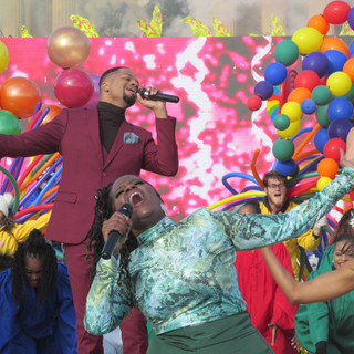 Featured guests and artists include (but are not limited to) Macy Gray, Aloe Blacc, Yolanda Adams, II Divo, Mickey and Minnie Mouse, and a wide range of special performances from marching bands (across the city, state, region, and beyond), cheer-leading squads, dance troupes, community organizations, a few "misses" (Miss Philadelphia, Miss Delaware, Miss Pennsylvania, Miss New Jersey, and the Miss Outstanding Teens from Pennsylvania, New Jersey, Delaware, and Miss America), the Broadway Philadelphia community, the Walnut Street Theatre (members of the Cast of "Shrek: The Musical"), and the mascots from the Philadelphia sports teams (the Phillie Phanatic from the Philadelphia Phillies, Gritty from the Philadelphia Flyers, Phang from the Philadelphia Union, Swoop from the Philadelphia Eagles, Soul Man from the Philadelphia Soul, and Franklin from the Philadelphia 76'ers).
