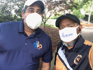 Sixth row: The team from Washington Law Group (one of the sponsors) competes on the course, and different media are present for the event (DNA Sports and veteran journalist Ernie Suggs pause for the cameras and connect with those in attendance).